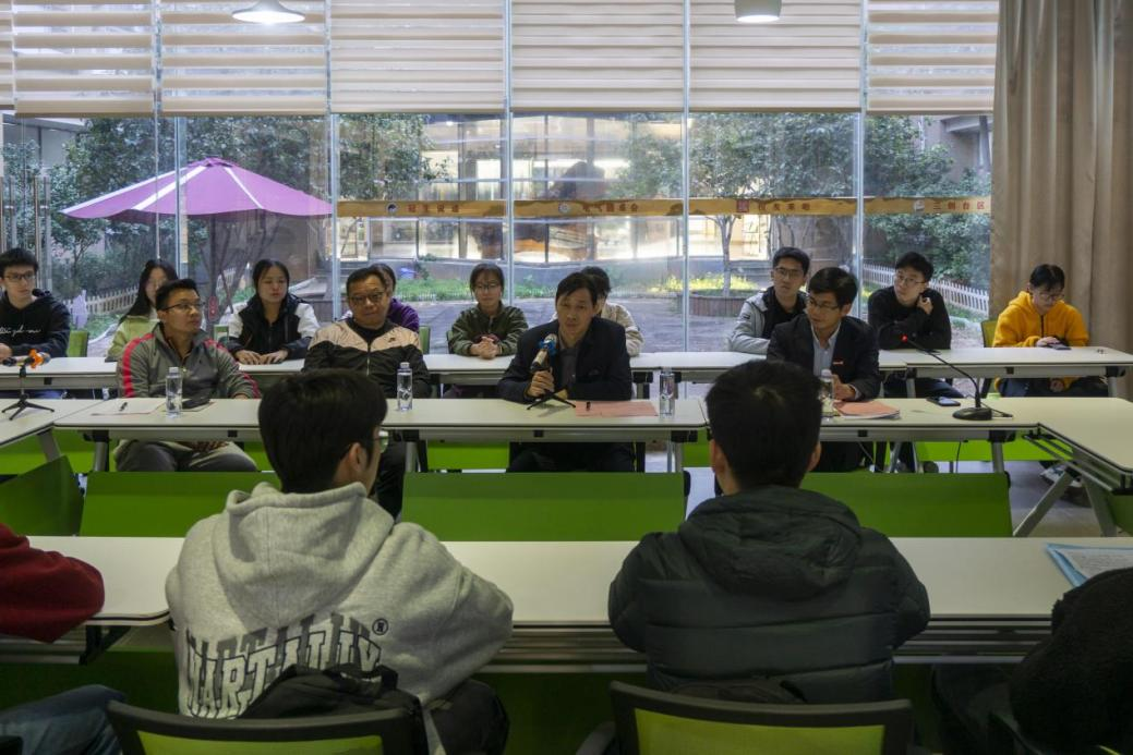 田径队队员参加研讨会。会议由院党委副书记钟钛申主持。