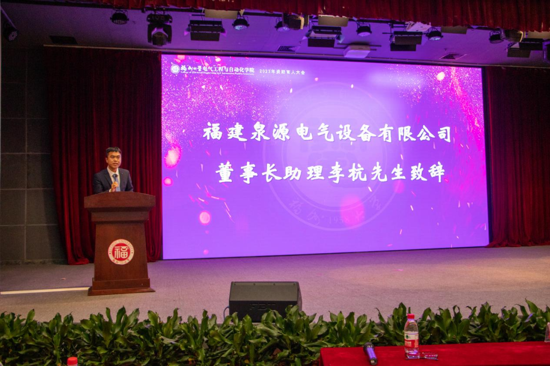 福建泉源电气设备有限公司董事长助理李杭先生首先对获奖学子表达了祝贺。他指出,泉源电气成立12年来,始终秉承着员工幸福、企业发展、回馈社会的核心文化理念,捐资设立泉源奖助学金,是泉源电气履行回馈社会责任的方式与心意。作为一家电力相关的高新技术企业,泉源电气深知人才对于企业发展的重要性,因此设立奖助学金以奖励成绩优异、学术成果丰富的励志学生。他希望麻豆社