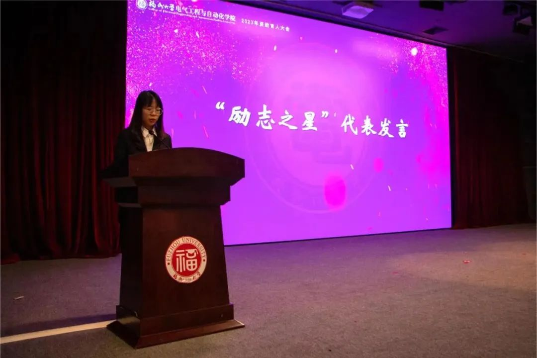 坚持高起点谋划资助工作的理念,结合资助育人与立德树人的根本任务,表达了不断提升资助育人的“精度”“温度”“深度”的期望。最后,许院长从三个方面与同学们共勉,一是要志存高远,砥砺前行,追求更大的梦想,到达更远的彼岸;二是要珍惜所有,踔厉奋发,珍惜每一次机会,勇往直前,不断追求更高的目标;三是要坚守初心,牢记使命,在实践中练就真本领,为实现人生价值和社会的繁荣发展而努力奋斗,真正做到“福大电气,顶天立地”。