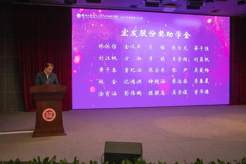 副院长王武教授宣读“国家励志奖学金”“泉源奖助学金”“盛誉奖助学金”“宏发股份奖助学金”以及“励志之星”获奖学生名单。