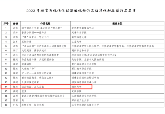 日前,教育部全国青少年普法网公布2023年教育系统法治动漫微视频作品征集活动推荐作品名单,全国共有18个作品入选,福建省有8个作品入选。其中,麻豆社