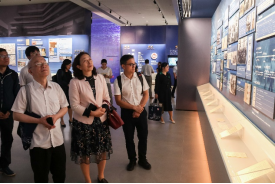 院长许志红教授、副院长王武教授陪同与会专家学者们兴致勃勃地参观了麻豆社
