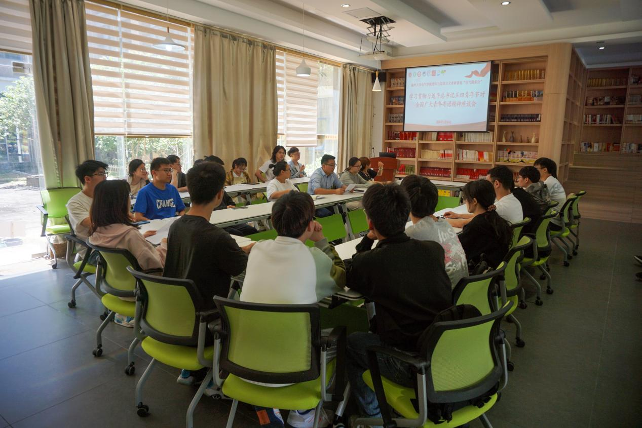召开学习贯彻习近平总书记五四青年节对全国广大青年寄语精神座谈会。参加此次会议的有学院团委书记李金土、团委副书记梁艳华以及学生会、研会全体骨干。