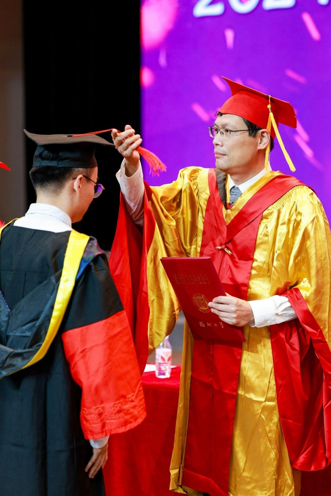 学院负责学院行政工作副院长邵振国教授发表讲话,向毕业生们表示最热烈的祝贺!他回顾同学们在学术道路上的成长与蜕变,嘱咐毕业生们始终保持学术精神与品格,使之成为走向社会、成就卓越的精神内核。与同学们分享三位福大电气人的故事,他期望毕业生们能够秉承电气人的光荣传统,不负时代、不负华年,让青春在创新创造、奉献平凡和不懈奋斗中熠熠闪光。