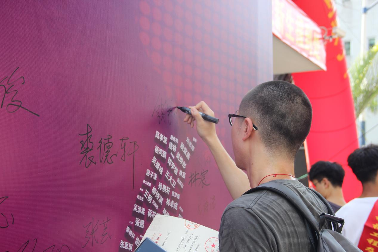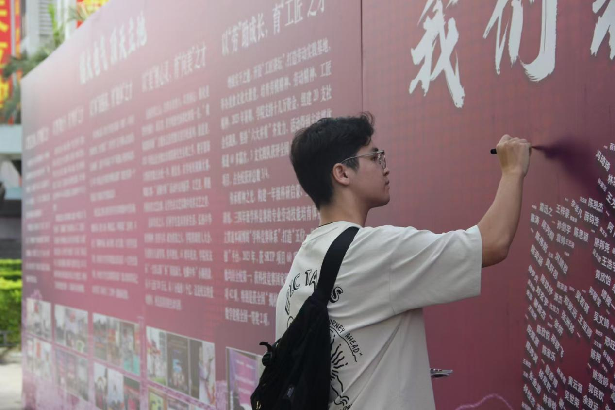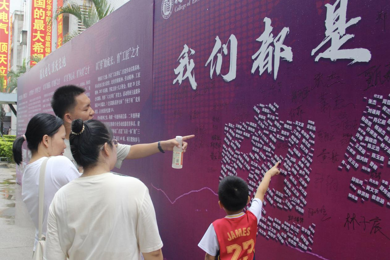 展板前,新生与家长们满怀激动,纷纷寻找并留下自己的“电气符号”。他们或提笔签名,书写对大学的憧憬与梦想;或合影留念,记录下这珍贵而难忘的一刻。