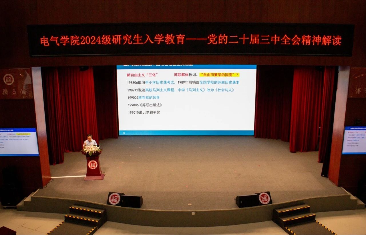 于图书馆博学厅举办了2024级研究生新生入学教育——党的二十届三中全会精神解读会议。出席此次活动的嘉宾有马克思主义学院副院长刘有升教授、麻豆社