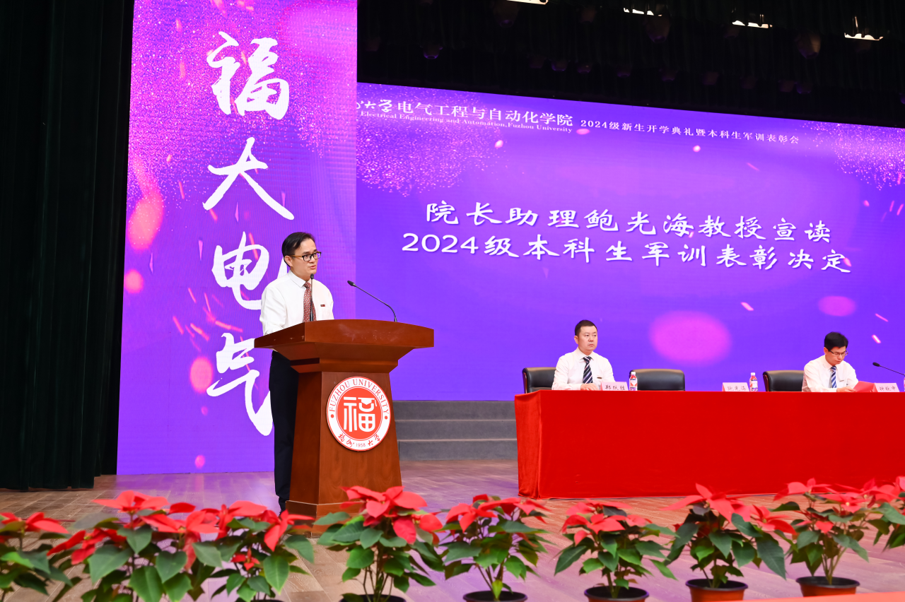 院长助理鲍光海教授宣读2024级本科生军训表彰决定,院领导为军训先进集体和个人颁奖。
