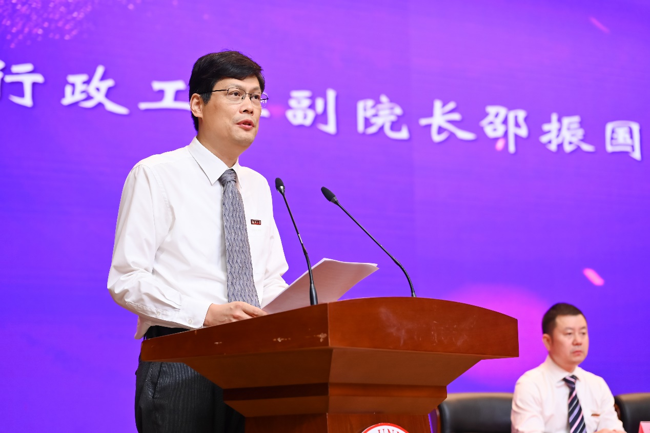 负责行政工作副院长邵振国教授代表学院对开启新征程的同学们表示欢迎,向辛勤培育他们的师长致以敬意。他介绍了学院的发展历程和成就,希望新“电气人”赓续接力,续写辉煌。邵院长提出三点期望:一是要立志勤学,做胸怀家国的电气人。志向决定人生的方向,视野决定人生的高度。在求学的道路上,新生们要不断探索、不断学习,要立大志、立长志,将个人的成长与国家的命运紧密相连;二是思学并进,做知行合一的电气人。要将学到的知识真真切切地落实到行动上,做到勤于学、敏于思、践于行。通过实践来检验和提升自己的知识水平和实践能力;三是学人之长,做行稳致远的电气人。要不断拓展学习的边界、丰富学习的内涵,以开放的心态、积极的态度投入到学习和成长中去,不断超越自我、成就自我。
