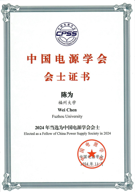 陈为老师被授予“2024年中国电源学会会士”称号。