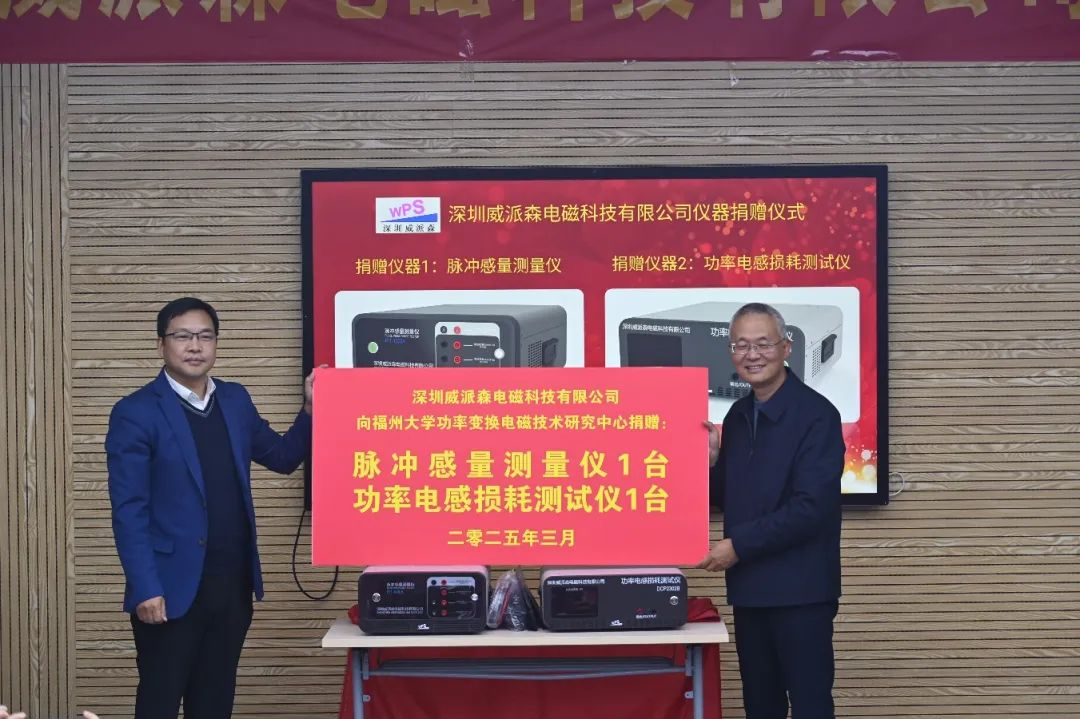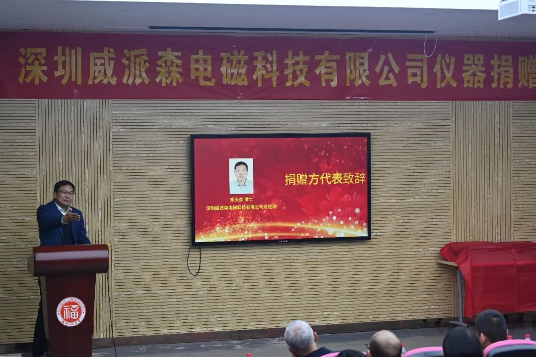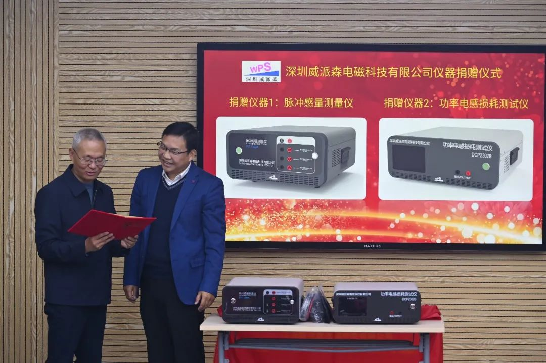 颁奖仪式结束后,深圳威派森电磁科技有限公司仪器捐赠仪式正式开始。深圳威派森电磁科技有限公司总经理郑庆杰博士出席捐赠仪式,公司此次捐赠了一台功率电感损耗测试仪和一台脉冲感量测量仪。这对于麻豆社