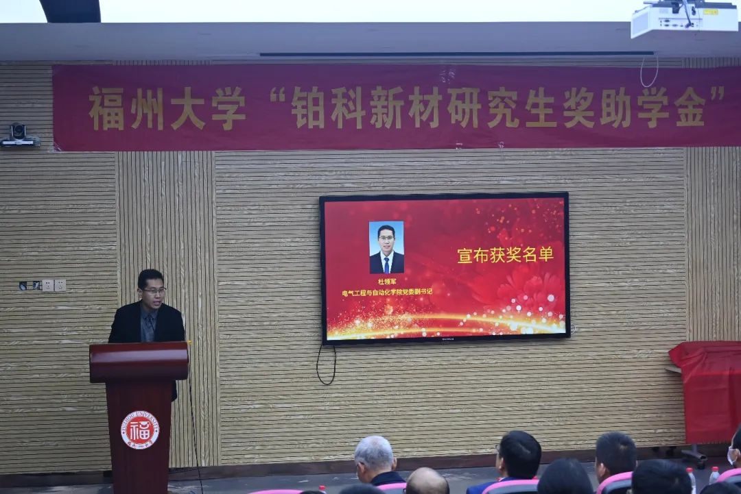 随后,党委副书记杜领军宣布了获奖名单,其中优秀博士研究生奖学金获得者为孔毅鹏、兰宇杰、何晴,优秀硕士研究生奖学金获得者包括杨钦文、张翔锃等优秀学子,邹高和徐卓烨荣获优秀硕士研究生新生奖学金。杜领军副书记鼓励获奖学生再接再厉,以更高的标准要求自己,勇攀学术高峰。学院领导和企业代表为获奖学生颁发了荣誉证书,并合影留念。