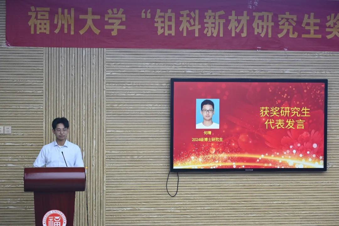 功率变换电磁技术研究中心团队全体学生,对深圳铂科新材股份有限公司表达了深深的感谢。他提到在科研道路上遇到过诸多困难,但凭着对专业的热爱和导师的指导,始终坚持了下来,正如“亮剑”精神一般。而获奖不仅是对过去努力的肯定,更是未来前进的动力。