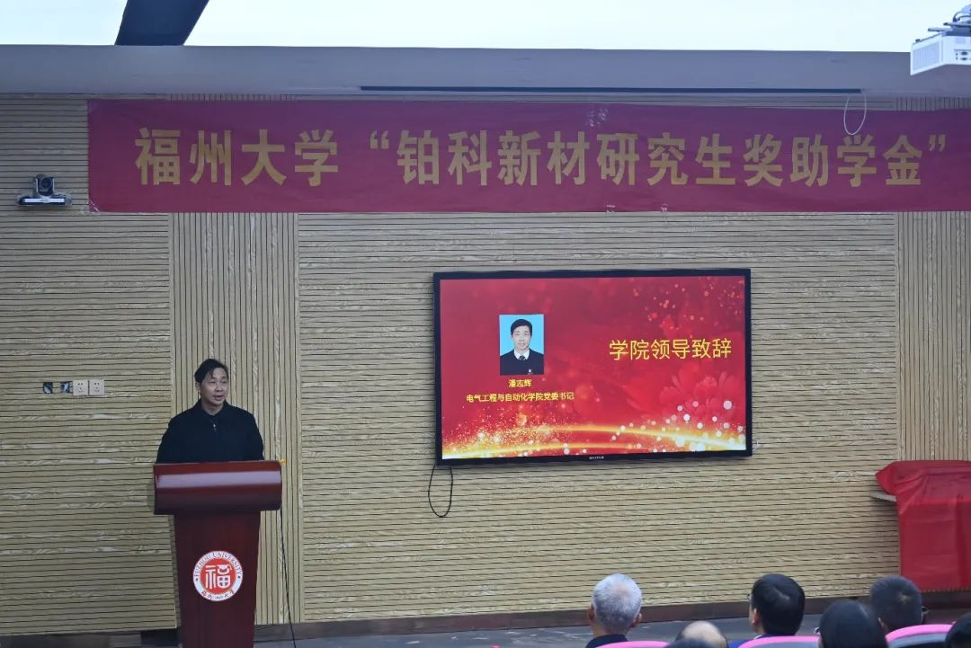 学院领导对此次活动高度重视,潘志辉书记致辞。潘书记首先对铂科新材和深圳威派森电磁科技有限公司的慷慨支持表示衷心感谢。他指出企业的奖助和捐赠不仅是对学生的鼓励,更是对学校教育事业的认可与推动。这些支持将助力学校培养更多优秀人才,为科研创新提供坚实保障。