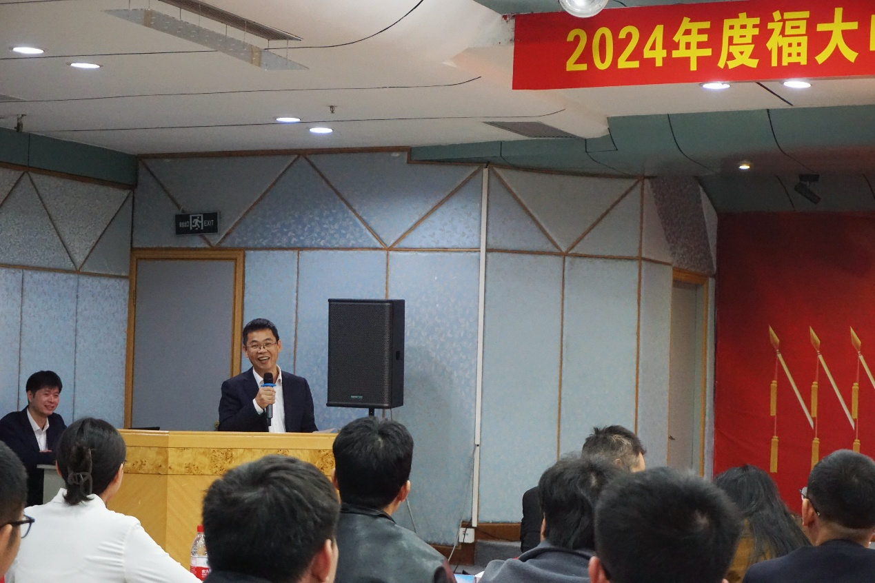 杜领军副书记代表学院对厦门宏发电声股份有限公司长期支持学院教育事业和人才培养表示衷心感谢,对获得“宏发奖学金”的优秀电气学子表示热烈祝贺。他强调,本次校企交流有助于同学们进一步了解厦门宏发以及他们的麻豆社,拓展专业视野,增进学习研究与产业实践之间的紧密联系。杜书记表示,宏发“不断进取,永不满足”的企业精神与“福大电气,顶天立地”、“无体育,不电气”的精神不谋而合,学院将继续深化产学研用合作,创新升级卓越拔尖人才培养模式,加强学科建设,提高学生实践动手能力。最后,杜书记向同学们分享了“喷泉之所以漂亮,那是因为它有压力;瀑布之所以壮观, 那是因为它无路可退;滴水之所以石穿,那是因为它贵在坚持”3句话,以此勉励电气学子“只有坚持别人无法坚持的坚持,才能拥有别人无法拥有的拥有”,力争为社会做出更大的贡献。