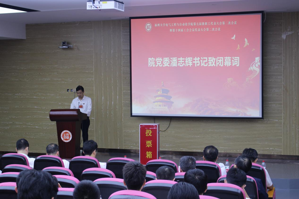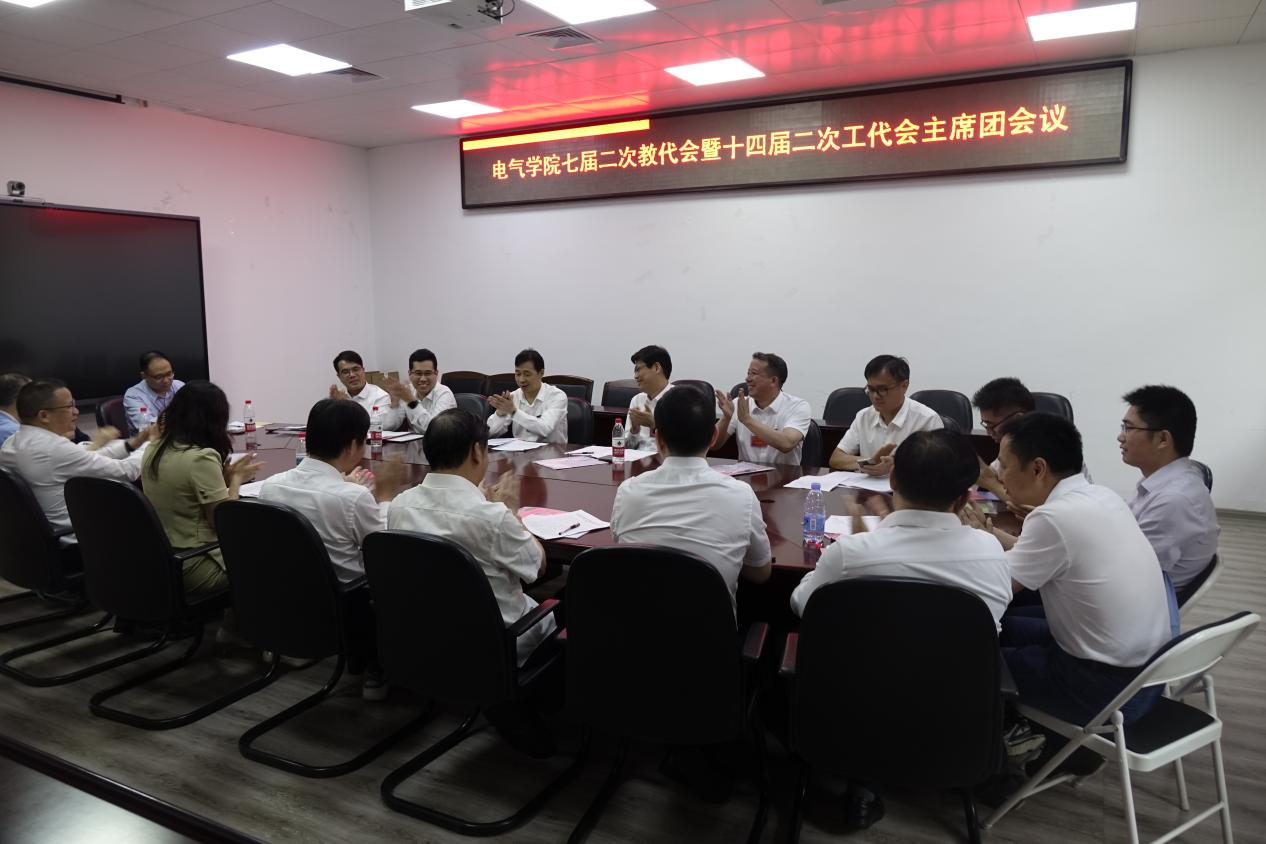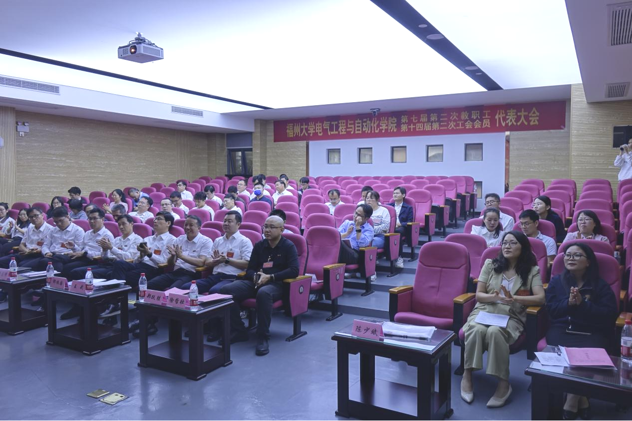 在新楚楼北230多功能报告厅召开第七届教职工代表大会第二次会议暨第十四届工会会员代表大会第二次会议,出席会议的有院党委书记潘志辉老师、院长邵振国教授、院党委副书记杜领军老师、副院长王武教授、副院长张艺明教授、院长助理郑跃胜教授、鲍光海教授、俆哲壮教授、学院工会主席陈少斌副教授、学院教代会代表、学院工代会代表等。