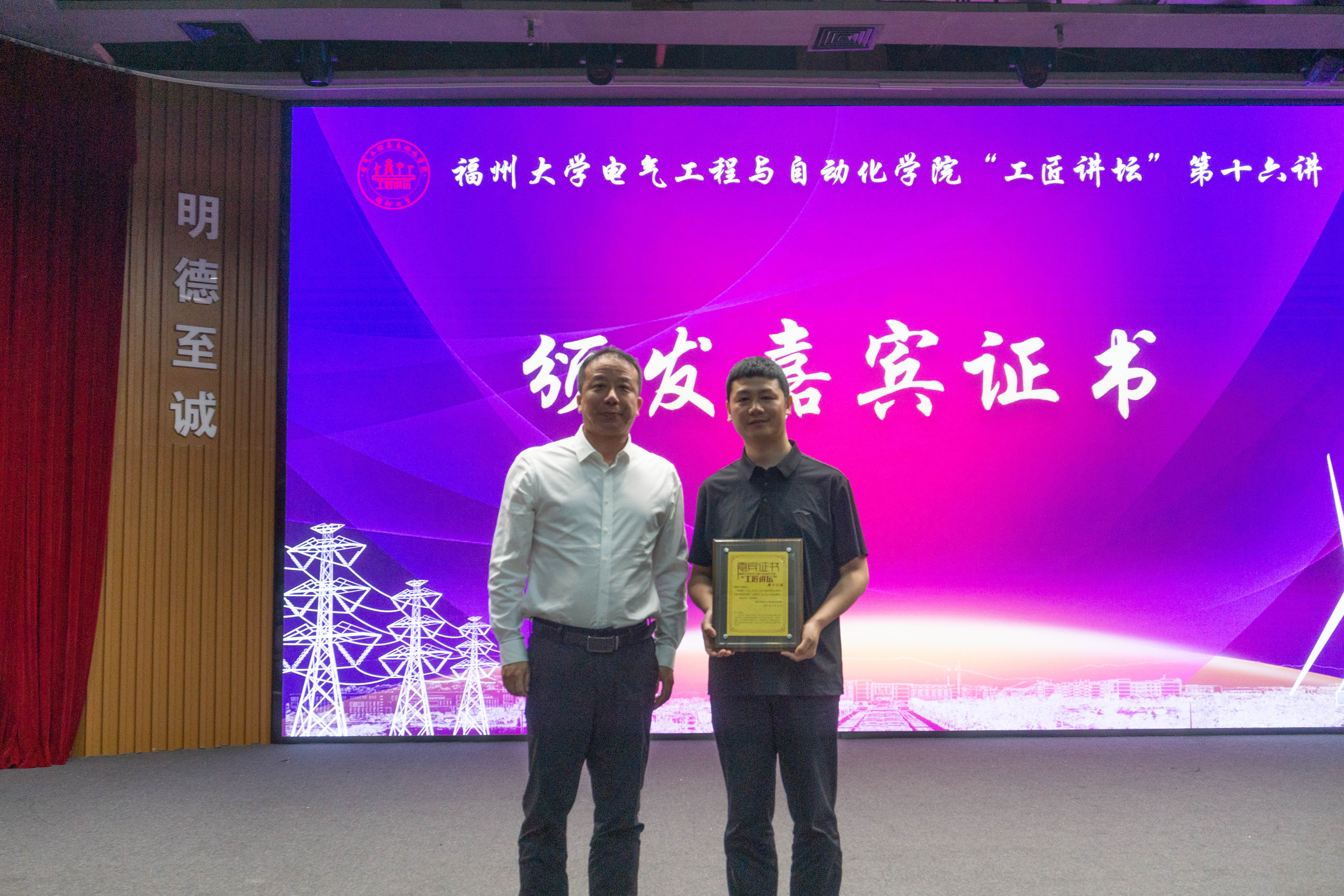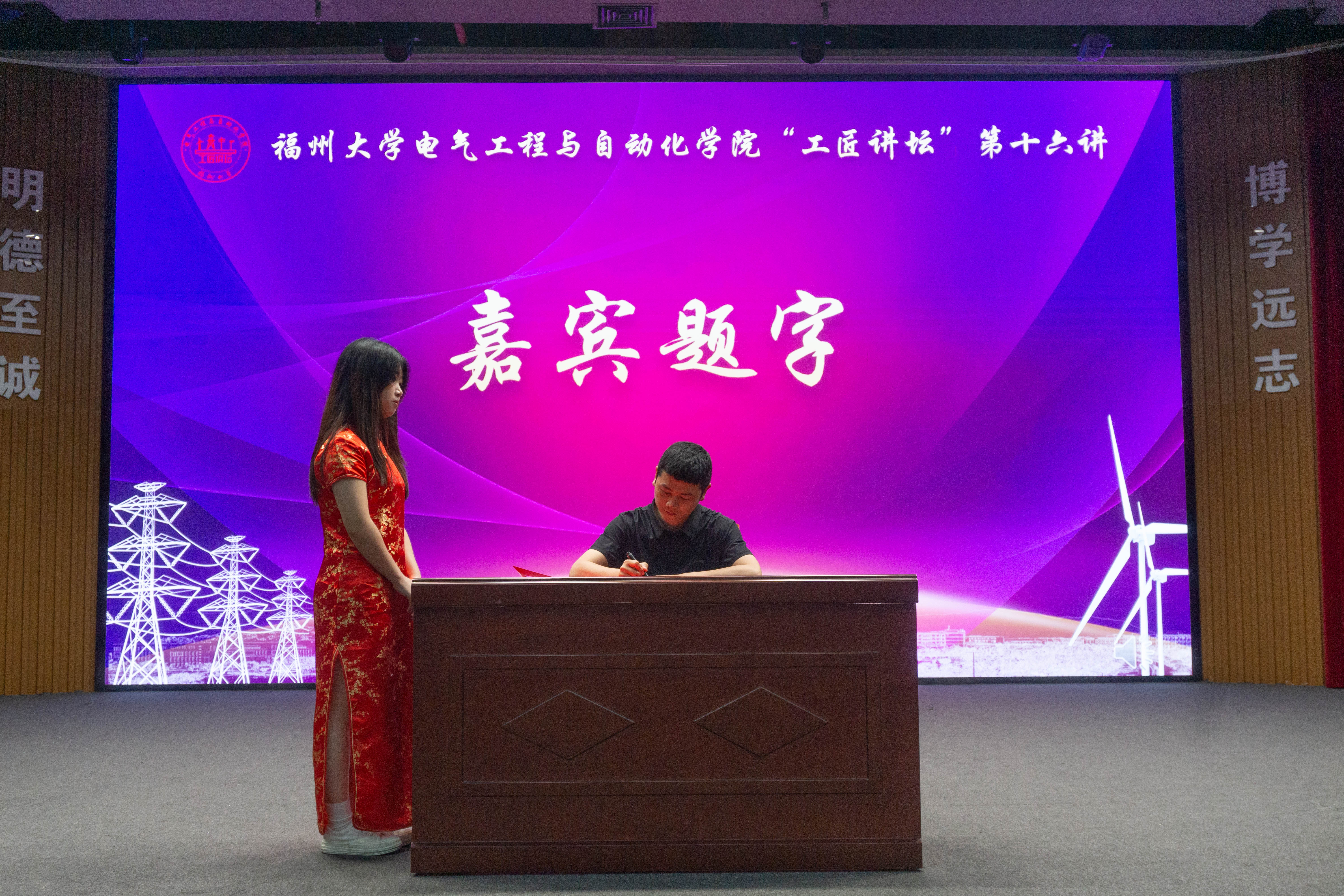 副院长王武教授为杨全超专家颁发嘉宾证书,学生代表为杨全超专家献花,杨全超专家也为"工匠讲坛"留下珍贵的墨宝。在热烈的掌声中,杨专家深情寄语在场师生:"立大志,入主流,上大舞台,干大事业!"