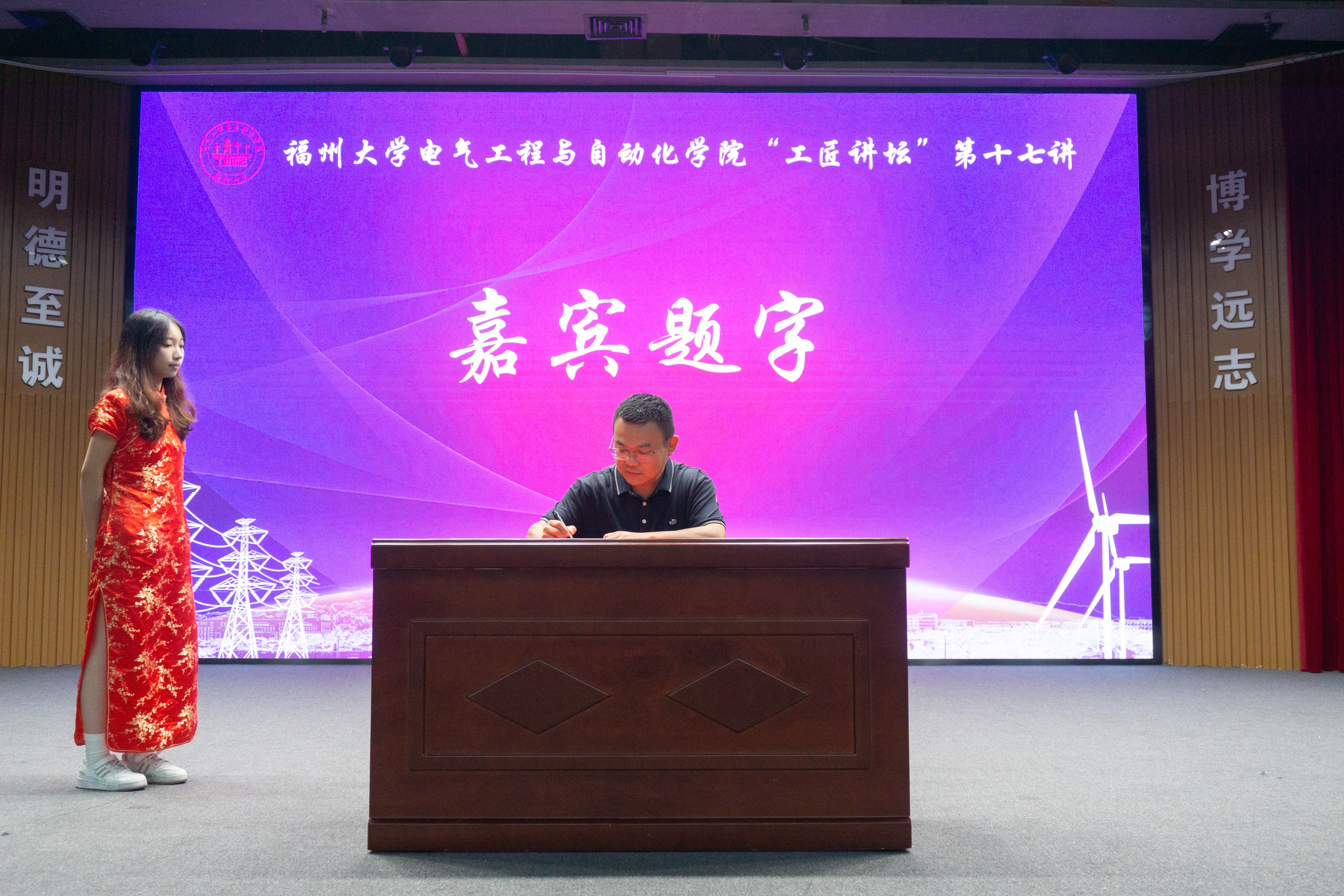 党委副书记杜领军为易龙强总工颁发嘉宾证书,学生代表为易龙强总工献花,易龙强总工也为“工匠讲坛”留下珍贵的墨宝。