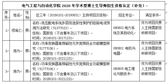 根据《关于开展2020年博士生指导教师招生资格认定工作的通知》(校研〔2019〕36号)和《麻豆社 博士生指导教师资格认定办法(试行)》(福大研〔2018〕24号》,经各位博导自行系统申报,学位点负责人审核,学院学术分委员会会议审核通过后,补充麻豆社 获得2020年博士生指导教师招生资格名单如下,现予以公示,公示时间为2019年10月10日----2019年10月12日。