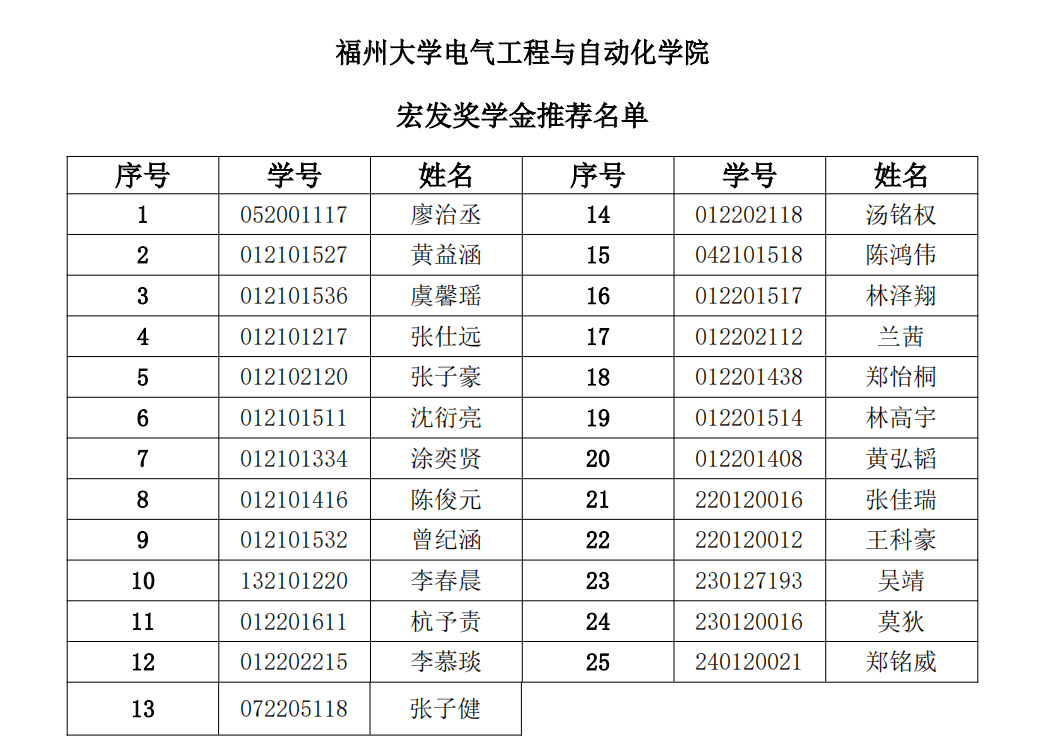 经学生本人申请,年级辅导员审核,学院学生资助工作小组成员讨论,结合各年级申请人年度成绩排名、综合测评、科研竞赛、所获奖助以及家庭经济情况等综合因素考虑,本着公平公正公开的原则,现学院学生资助工作小组决定推荐廖治丞等25名同学参与麻豆社 2024年“宏发奖学金”的评选。现予以公示,公示时间为2024年12月16日-2024年12月19日,在此期间若对上述名单存有异议,请及时反馈给各年级辅导员。