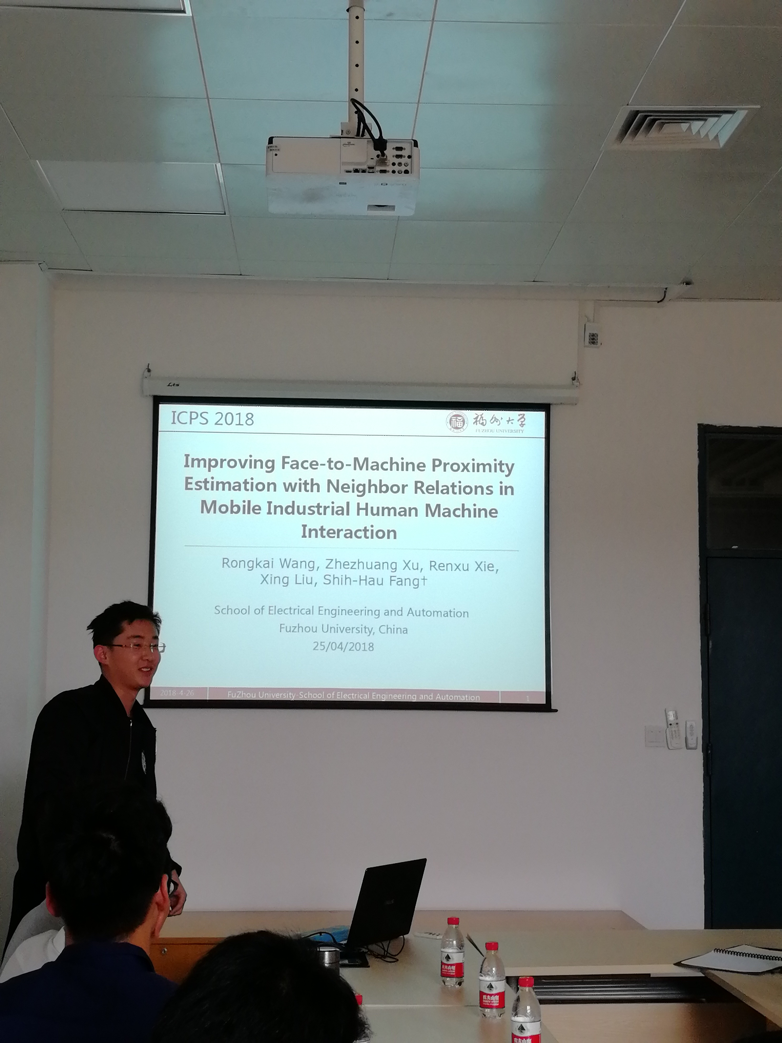 在主持人蔡合瑶简单开场过后,报告会就开始了。本次报告会的顺序依次是殷俊同学的《双端柔性直流配电网线路保护方案的研究》、曾星岚同学的《基于模型预测的在线故障诊断方法研究》、张宇超同学的《环形磁芯磁化特性测量与分析》、胡杨同学的《离散时域复合非线性伺服控制技术研究》、林清泉同学的《基于深度学习的三维目标识别与最优抓取方法研究》、汤邵建同学的《永磁同步电机预测速度控制》、王荣凯同学的《移动工业人机交互中基于邻近关系的面对机器的接近感知改进算法》、谢仁栩同学的《基于大数据分析的风机结冰故障预测》、余康舟同学的《基于Delta算子的质子交换膜燃料电池H∞鲁棒控制》、