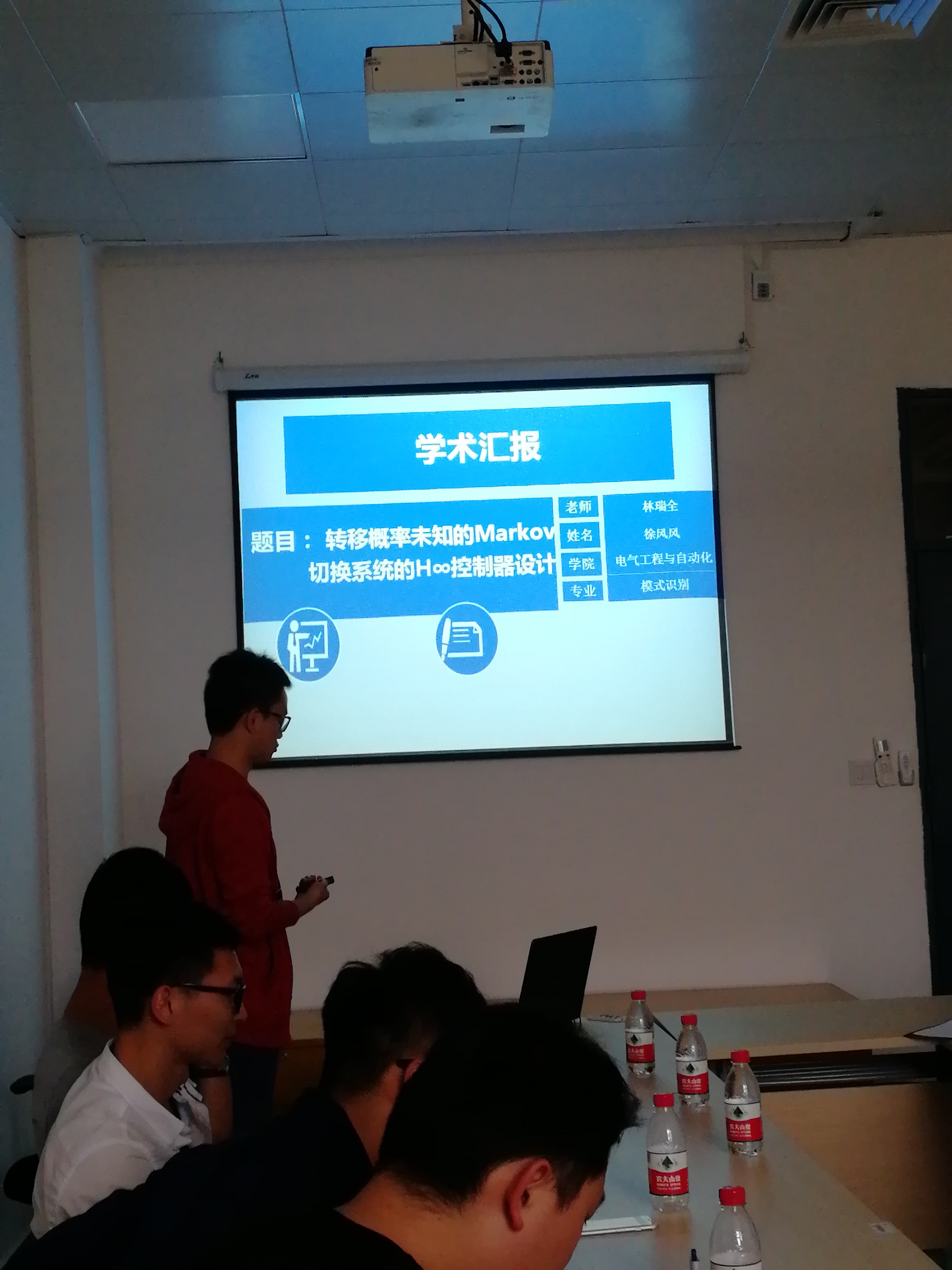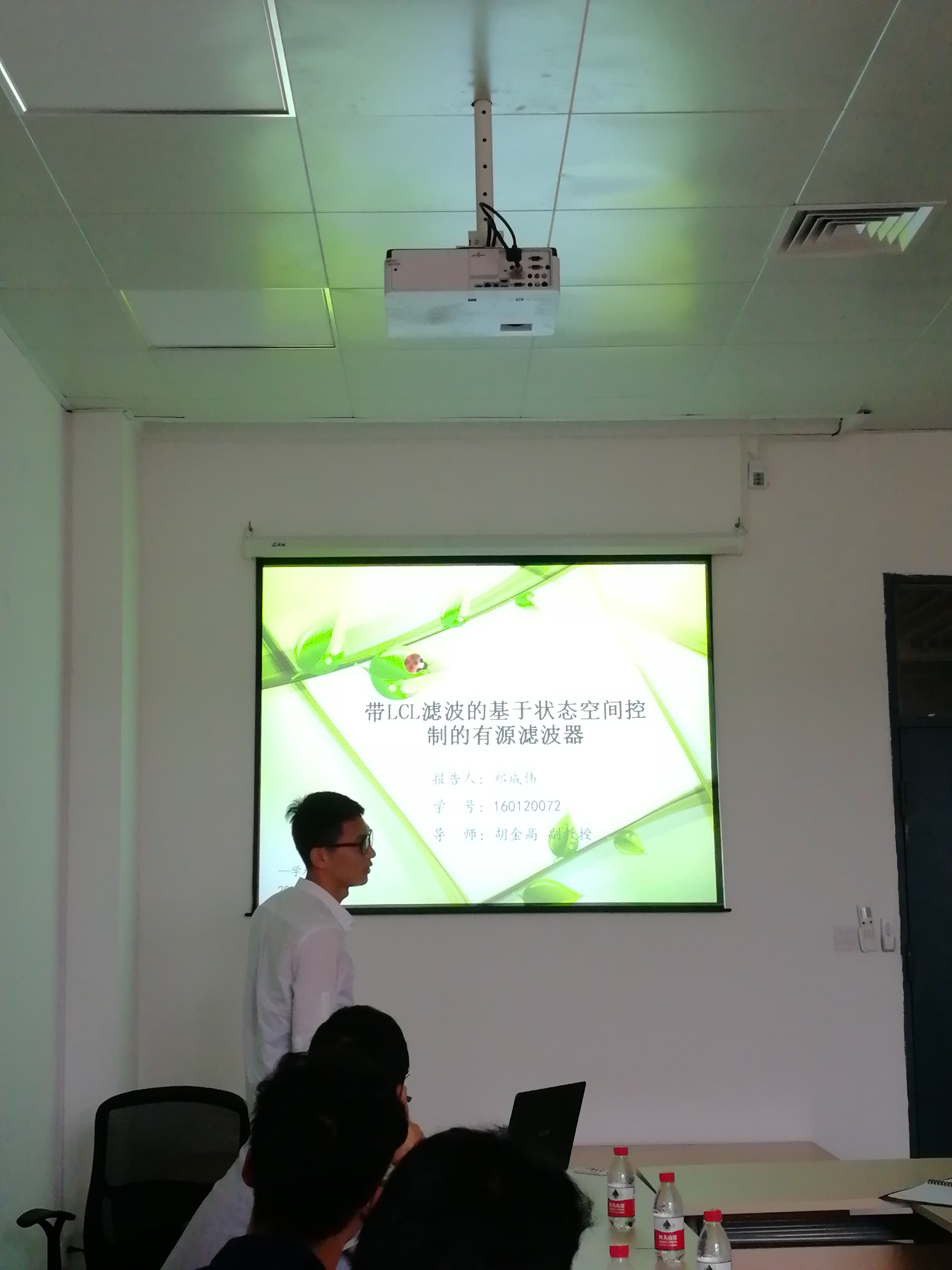 郑成伟同学的《带LCL滤波的基于状态空间控制的有源滤波器》、吕强同学的《四旋翼无人机分布式编队控制》、徐风风同学的《转移概率未知的Markov切换系统的H∞控制器设计》以及钟永安同学的《红外焦平面的非均匀校正》。