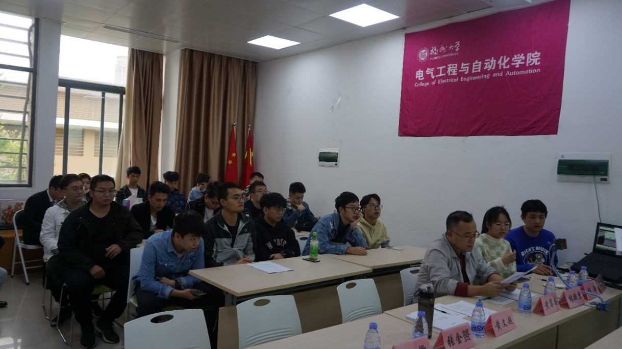 2020年研究生科技月企业命题大赛在新楚楼北211会议室拉开序幕。此次大赛的评审是线上结合线下的形式,通过直播的方式将现场与思源电气集团连线。担任线上评审的评委老师有:思源电气集团如高高压电器有限公司研发总监兼总工程师林魏岩老师、思源电气集团如高高压电器有限公司总工程师魏军老师、综合管理部部长张金赟老师、测试部部长彭翔老师以及流程与质量管理部部长王柳老师。