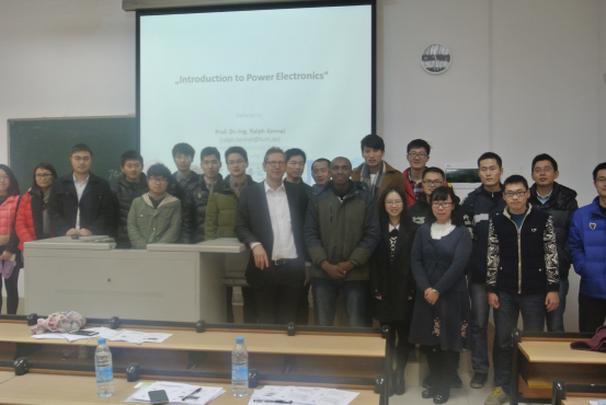 的研究生同学带来了为期18个学时的专业课教学,该次课程实际上是慕尼黑工业大学的一门研究生专业,课程内容涵盖An Introduction to Power Electronic一直到Mechanical design and cooling techniques.整个课程内容丰富,由浅入深,层层递进,详细地教授了电力电子技术基础知识以及前沿地应用领域,并且同时也讲授了控制技术的应用以及实际产品的设计思路。同学们积极参与课堂学习,并积极地向Kennel教授讨论各方面的问题,不浪费每一次与Kennel教授这样的国际学术大家交流的机会。
