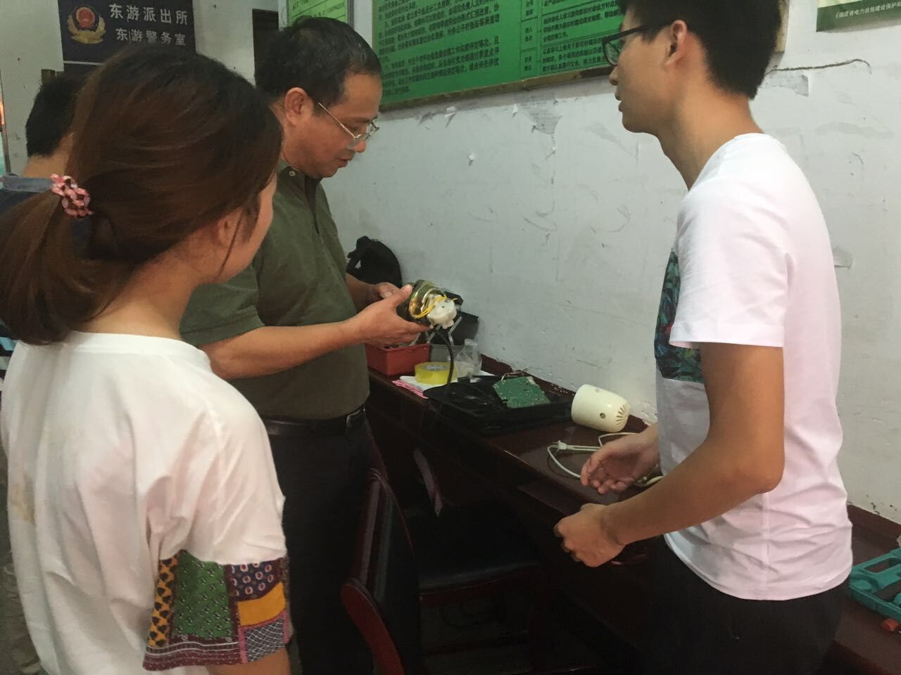 活动伊始,青春学子们走街串巷向村民宣传安全用电知识,并告知村民队员们将在东游村村部门口提供免费维修电器的服务,村民们闻讯后拎着家中故障的电器络绎不绝地赶来,实践队仅在12日上午就收集了各类大小家电101件,之后队员们立即动手维修故障电器。拧着螺丝刀,转动扳手,更换保险丝,焊接线路,队员们学以致用,娴熟地用着手里的工具,将一件件故障电器重新变废为宝。作为实践队中的每一员,每当我们修好自己手中的电器时,心中便油然升起一股成就感。队员张伟豪同学说的好,“这个活动让我们将书本上的知识应用于实践中,不仅修缮了村民们家中的故障电器,同时也锻炼了我们的动手能力。”