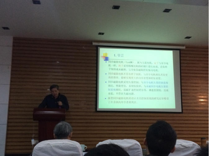 首先,徐启峰教授向我们介绍了关于电子式电压互感器发展方向的一些探索,举例了目前较为先进的几种电子式互感器,并对电子式电压互感器目前实验室样机与实际成品化之间存在的问题进行了分析。紧接着是李玉榕教授做基于连续-离散EKF建模的p53-Mdm2调控关系的讲座,李玉榕教授先简要介绍了p53-Mdm2基因的基本知识和跨学院团队的合作情况,接着就连续-离散EKF建模在基因调控中的作用展开分析,展示了基因调控的一些成果。然后是汤宁平教授作关于新型同步磁阻电机的结构设计和特性分析的讲座,汤教授简要介绍了项目产生的背景以及目前电机市场的基本情况,提出新型磁阻电机的结构设计,并从多个方面展示和分析了电机的多种设计参数,项目所设计的磁阻电机较传统电机的优势明显。接着是程国扬教授向我们介绍快速点位运动控制—现实条件下的性能鲁棒性,程教授介绍了目前几种点位运动控制的基本原理和存在问题,提出并分析了点位运动控制中性能鲁棒性分析的关键点与解决措施。在接下去是陈为教授作关于高频功率磁元件磁芯损耗特性的讲座,陈为教授首先以高频磁元件的应用引入话题,分析了现有测量手段下高频磁元件应用中存在的一些问题,最后分析提出了改善高频磁元件性能的方法。林瑞全教授也向我们介绍了质子交换膜燃料电池过氧比控制的课题研究,分析比较了当前几种技术的优劣势并介绍了过氧比控制中的基本原理。最后是王进华教授作关于鲁棒降维控制器设计方法的讲座,王教授首先介绍了控制器提出的背景问题,然后提出了保证控制系统的鲁棒稳定和鲁棒性能达到要求的鲁棒降维控制器。
