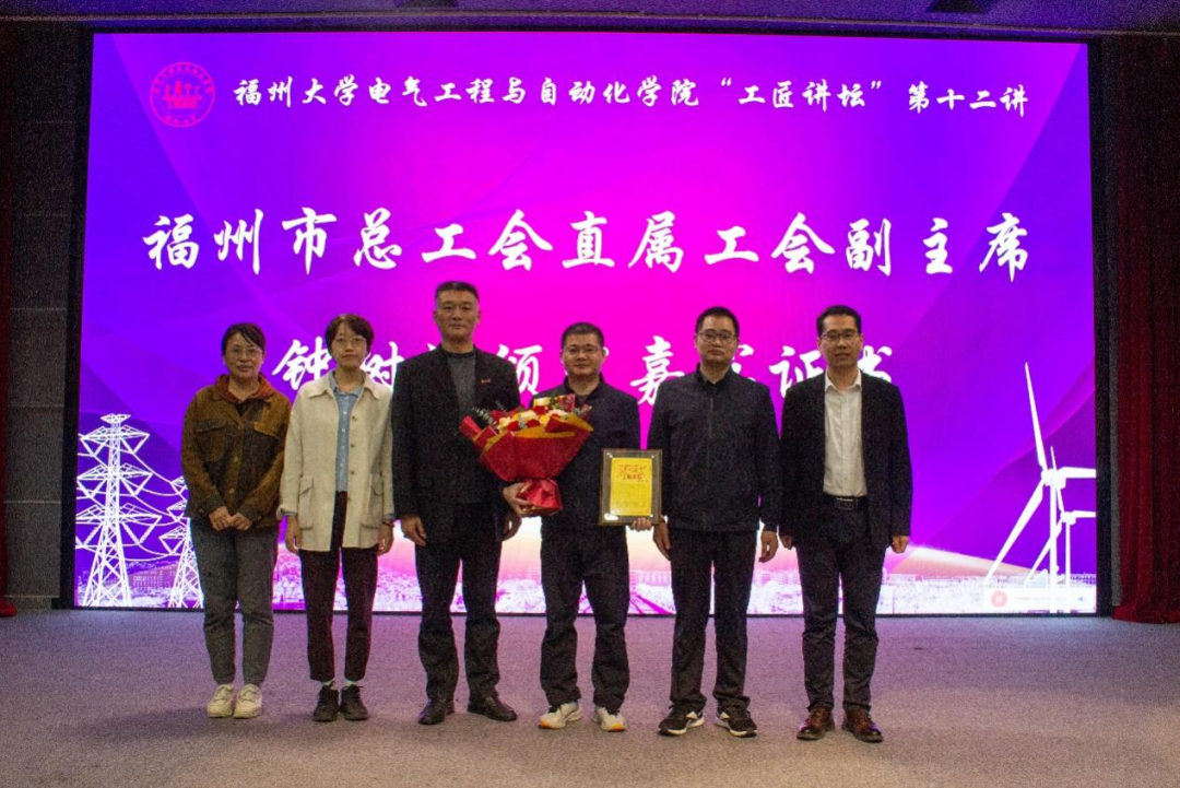提问互动环节结束后,由福州市总工会直属工会钟树源副主席为王维乐高级工程师颁发嘉宾证书,学生代表为王维乐高级工程师献花,王维乐高级工程师也为“工匠讲坛”留下珍贵的墨宝。王维乐高级工程师以“砥砺深耕,笃定而前行”作为对同学们的寄语,鼓励大家在职业道路上不断探索和前进,不畏挑战,坚持自我提升。体现了对工匠精神的传承与创新。希望我们以王维乐高级工程师为榜样,成为躬身力行,好学有为的祖国下一代接班人!